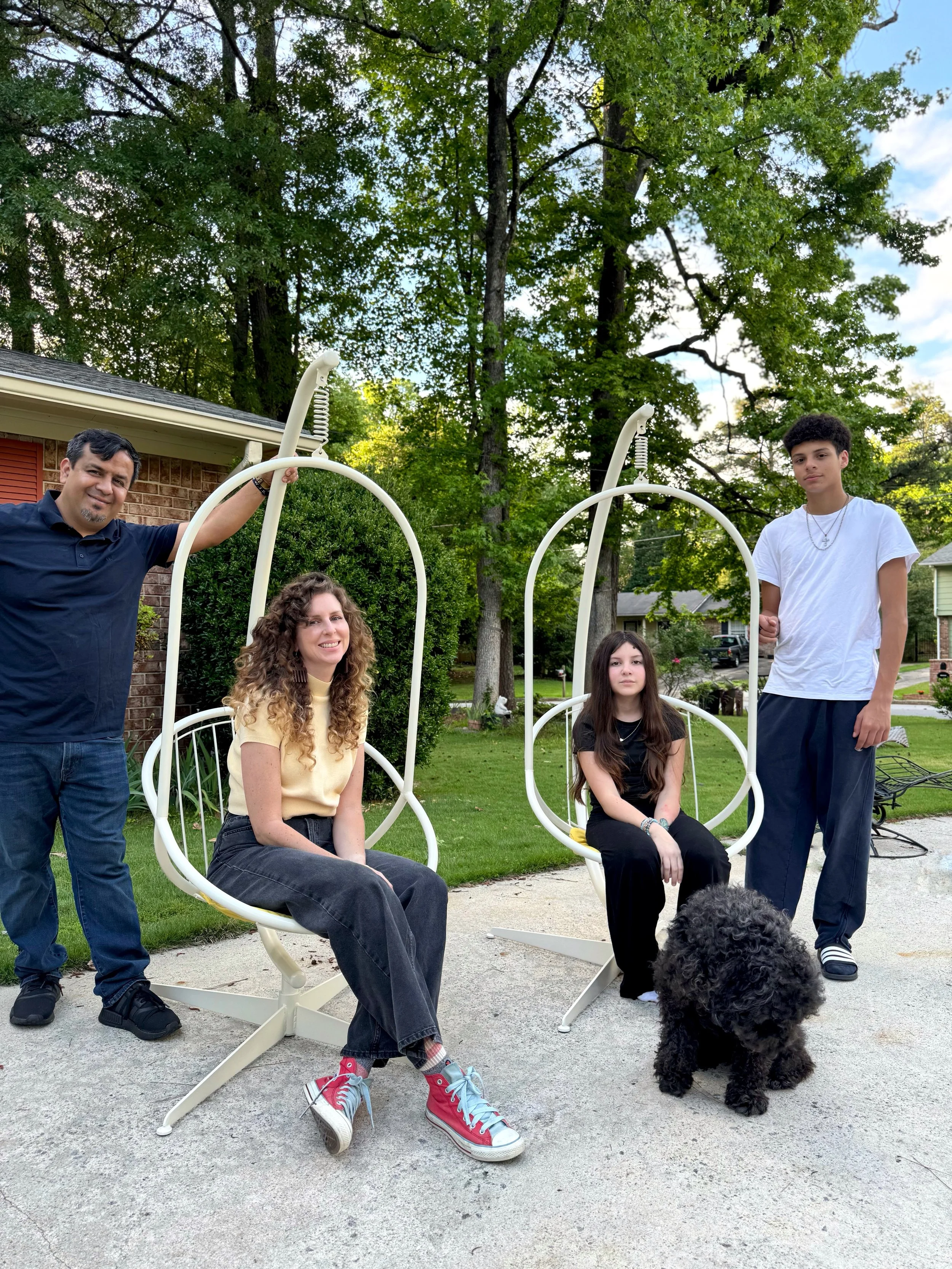 We’re a family of four (plus two dogs), and this business is woven into our lives. Our kids, Oliver and Maya, see everything we do up close—early mornings, late pickups, sanding sessions on the porch, staging rooms, loading deliveries, and celebrating when a piece finds its new home. Our dogs, Lexi and Linus, are usually somewhere in the mix too.